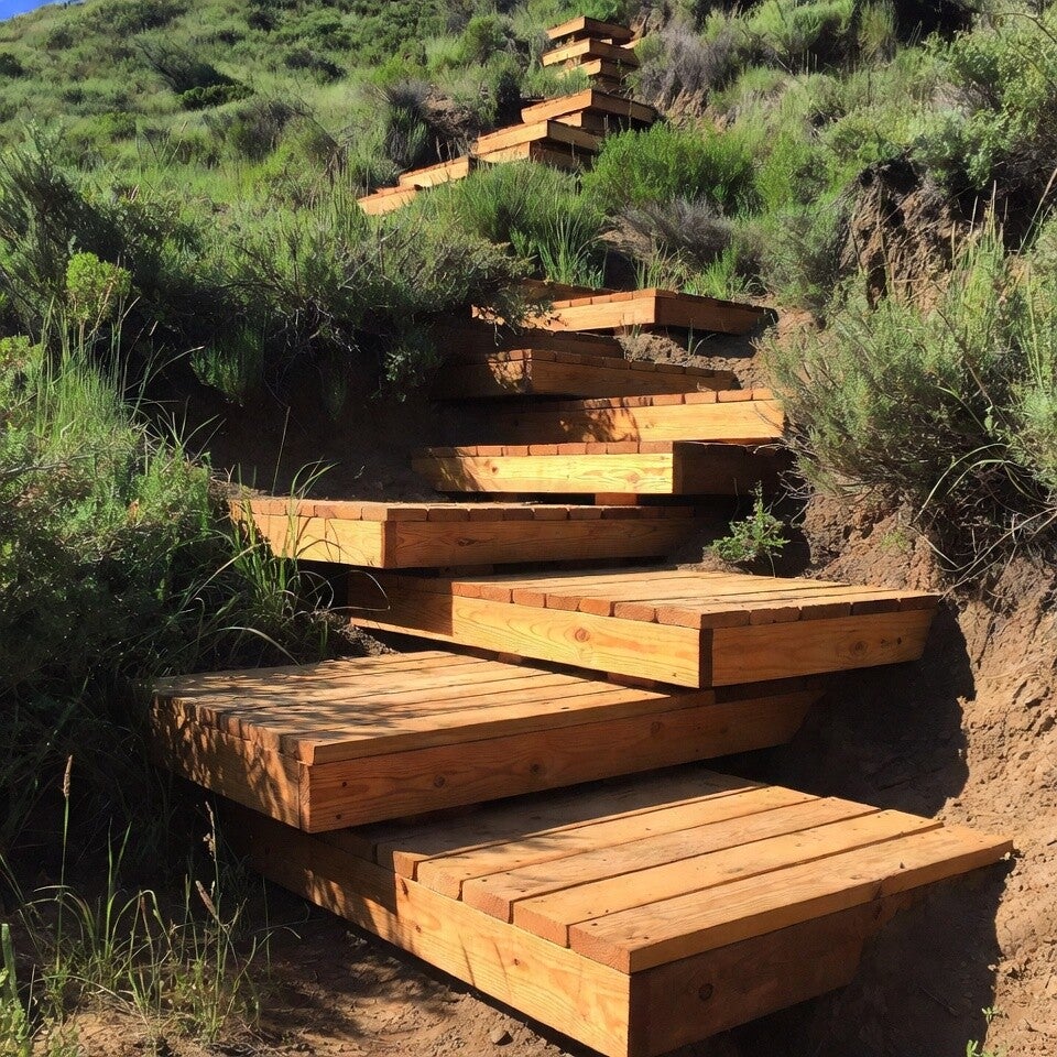 Stack them, climb them, own your hillside—enjoy the heck out of these pine platform stairs today!
